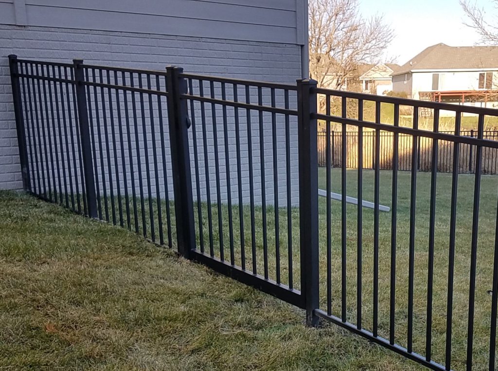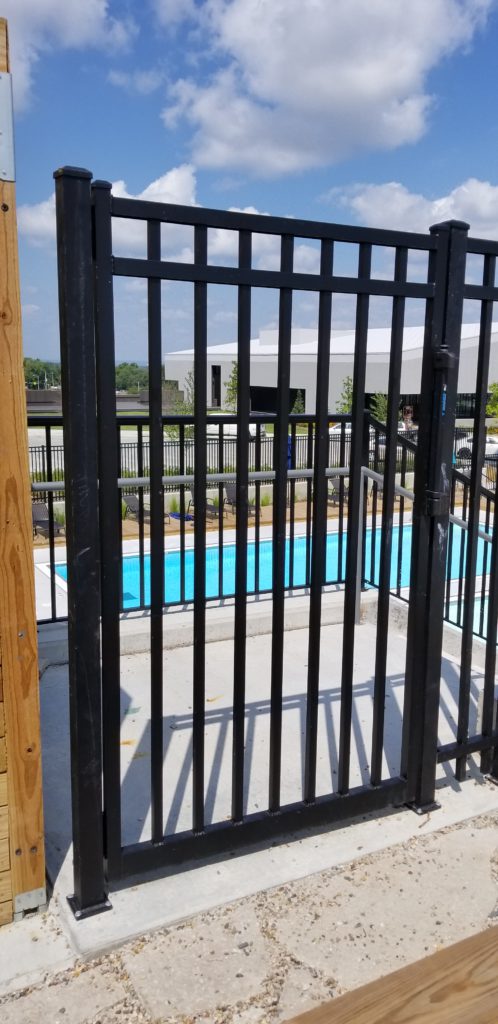 This is a custom Courtyard aluminum designer gate with a keypad and remote openers. We designed this to match the fence we installed throughout the yard.